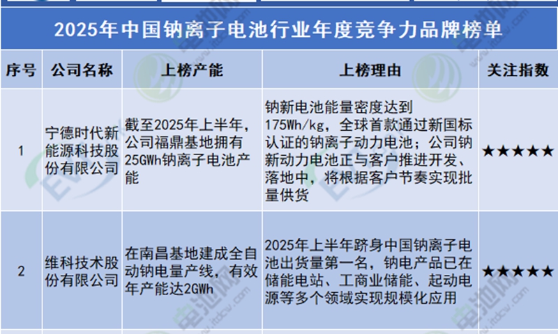 實(shí)力認(rèn)證 | 維科技術(shù)榮膺鈉電競爭力品牌榜單No.2,僅次于寧德時(shí)代